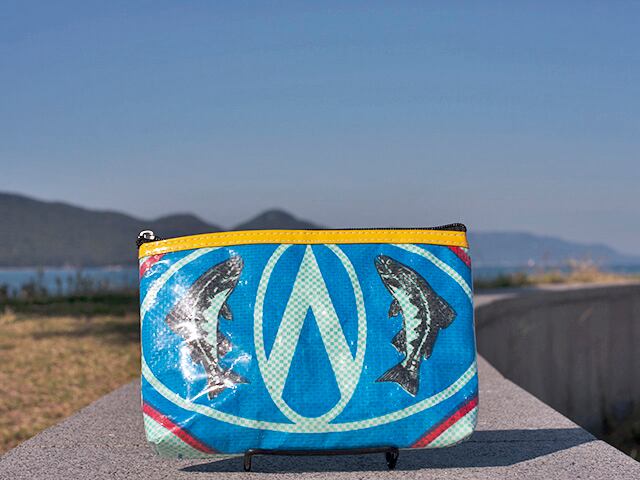 淡水魚養殖用の飼料袋(未使用品)で作られています。